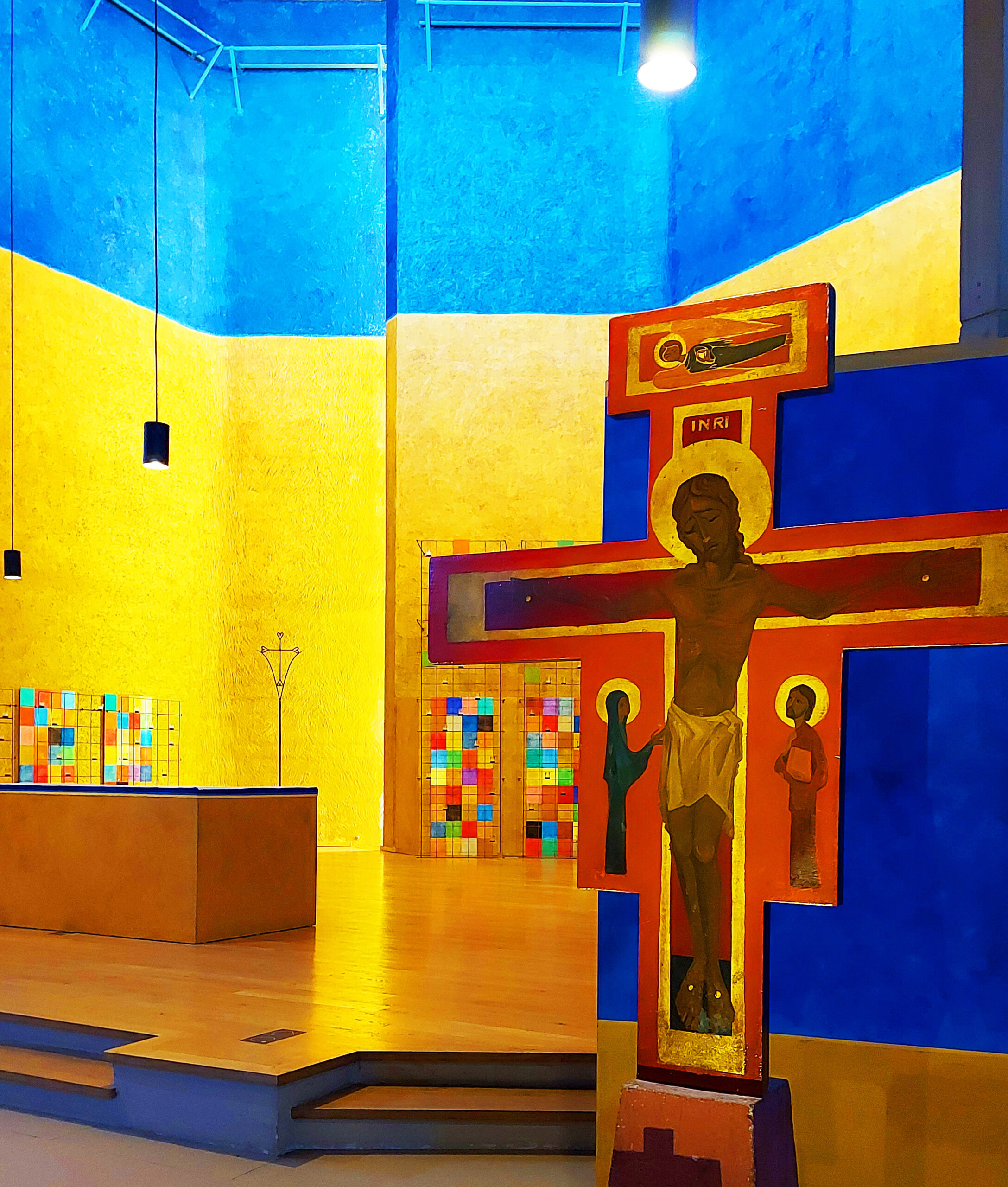 Die Bühne hierfür bietet unsere moderne, skulpturale Kirche Hl. Johannes XXIII. bzw. unsere Aula Lounge, in deren Räumlichkeiten die Teilnehmer ihre Kreativität zum Ausdruck bringen und Themen des Wohlbefindens erforschen können. Eine gute Gelegenheit, mit Gleichgesinnten in Kontakt zu treten, seine künstlerischen Talente zu teilen und sich gegenseitig zu inspirieren.