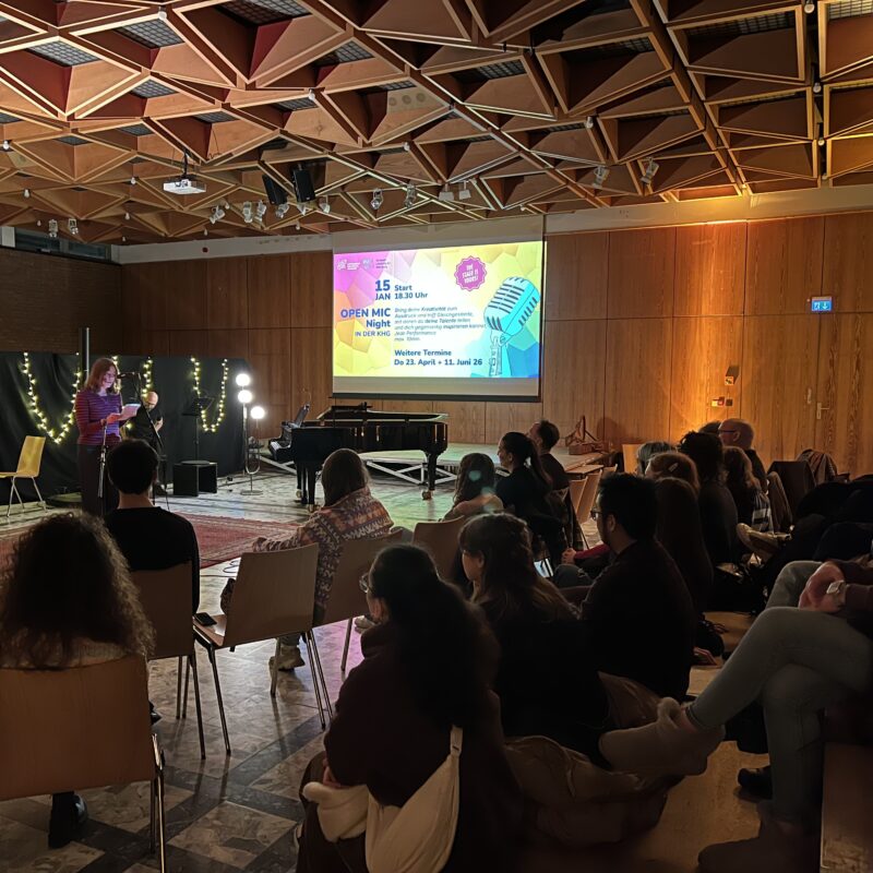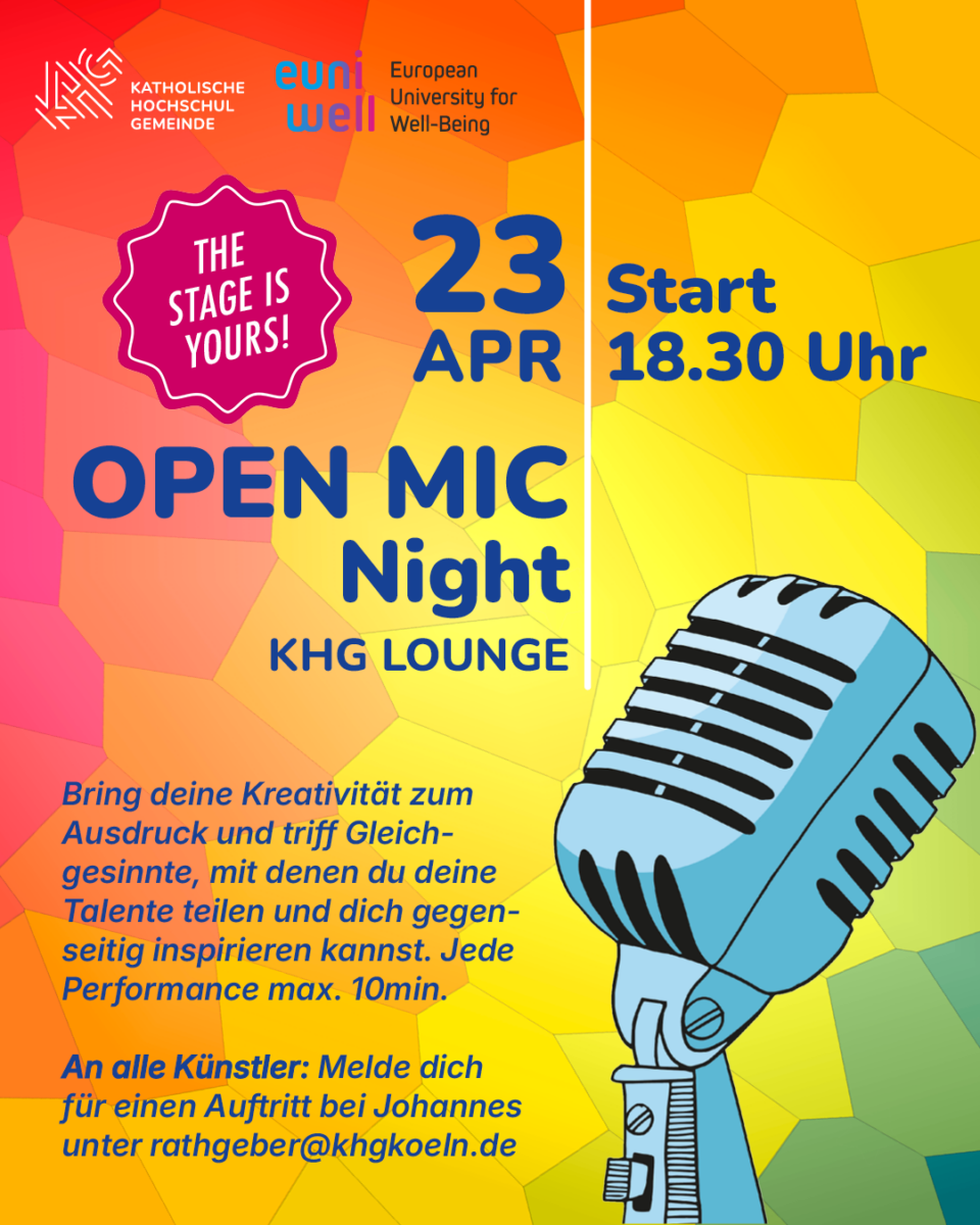 Mit dem Open Mic Abend wollen wir eine wiederkehrende Plattform bieten, auf der Studierende der Kölner Hochschulen sowie junge lokale Künstler ihre kreative Auseinandersetzung mit Themen des individuellen, sozialen und ökologischen Wohlbefindens präsentieren können.